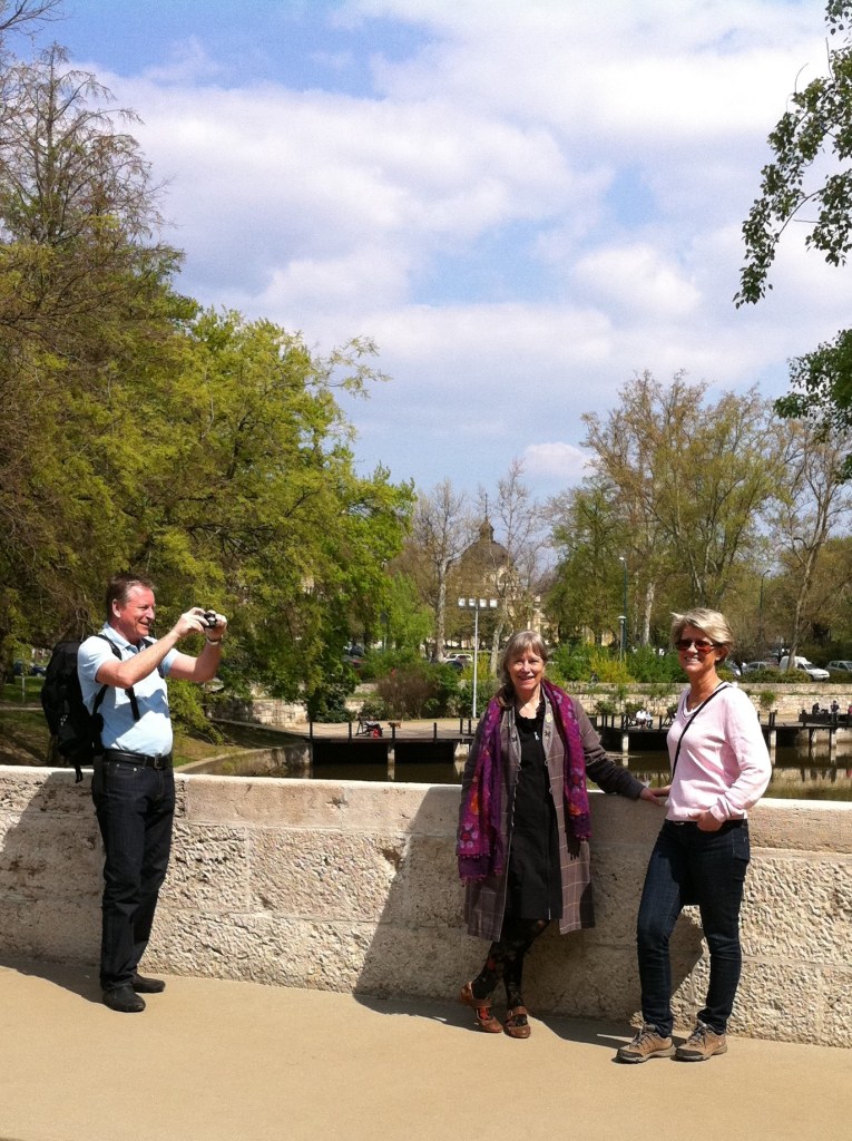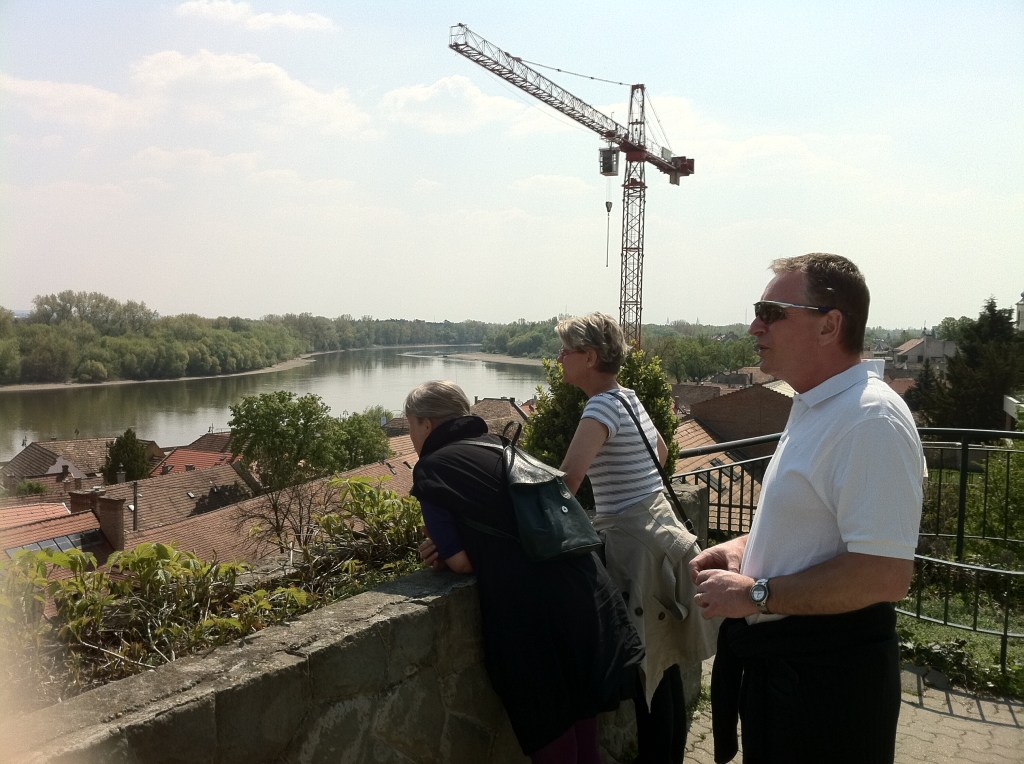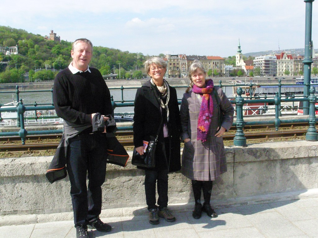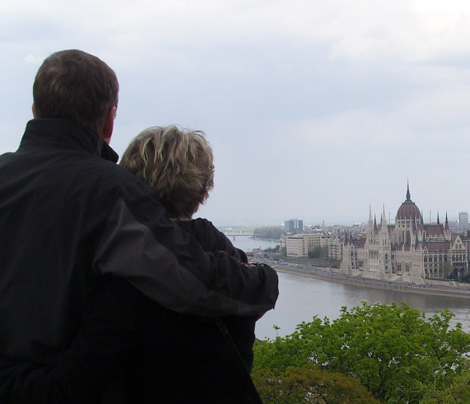 Vårt ressällskap som står på Buda-sidan har parlamentet till höger på Pest-sidan av Donau.